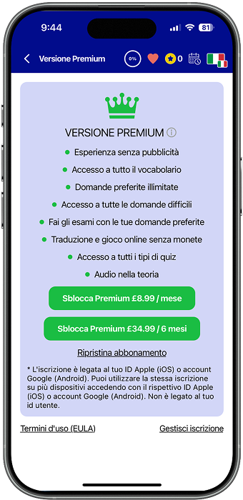 ottima applicazione 0er per studiare la patente, l'unica cosa che secondo me manca e il lettore automatico.