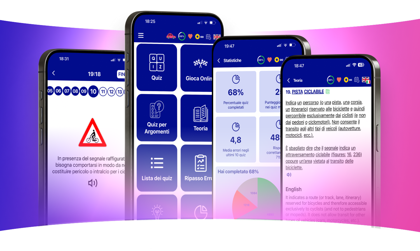 Sii ottima app e comodo per fare i quiz anche quando hai il tempo libero quando ti ritiri da scuola o da lavoro ti metti nel divano/ letto e cominci a fare i quiz per me può essere utile perché non l'ho ancora preso ma con questa app mi aiuterà a prendere la patente ❤️😍