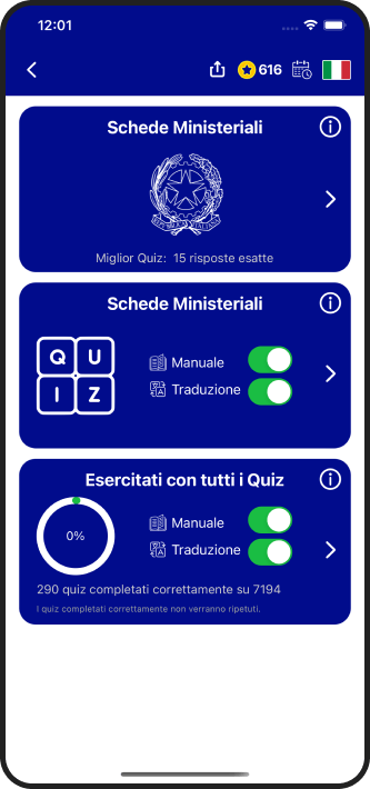 Ottima App grazie. Molto utile per lo studio e anche per avere un'idea di come saranno i quiz per l'esame