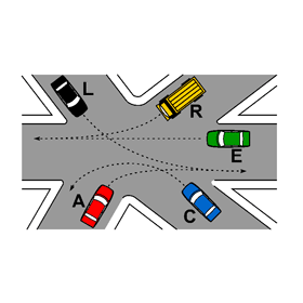 Dovendo attraversare l’incrocio rappresentato in figura il veicolo A deve attendere il passaggio del veicolo E