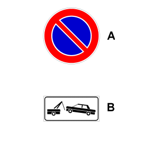 Il segnale (A), integrato con il pannello (B), indica una ZONA RIMOZIONE COATTA