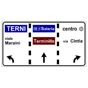 Il segnale raffigurato indica ai conducenti diretti a Terni di mettersi nella corsia di sinistra