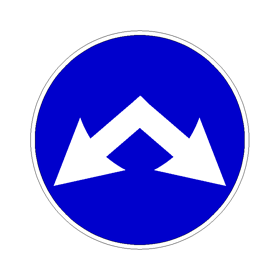 Il segnale raffigurato indica i passaggi consentiti a destra e a sinistra di un’isola di traffico