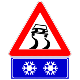 Il segnale raffigurato indica strada sdrucciolevole per ghiaccio, in caso di bassa temperatura