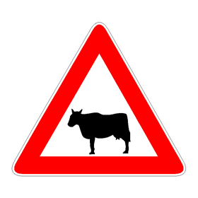 Il segnale raffigurato preannuncia la possibilità di trovare sulla strada animali domestici vaganti