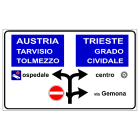 Il segnale raffigurato preavvisa di svoltare a destra per il centro della città al secondo incrocio