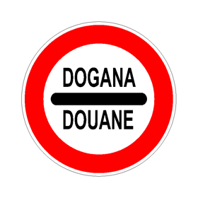 Il segnale raffigurato segnala un varco doganale al quale è obbligatorio fermarsi