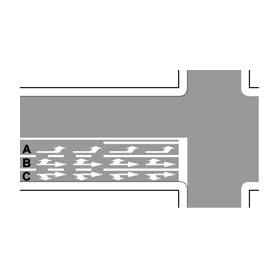 In presenza della segnaletica in figura, la corsia C è l’unica che consente di svoltare a destra