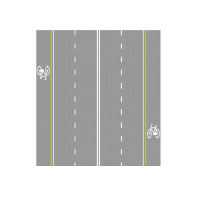 In una carreggiata come in figura in caso di intenso traffico, ciclomotori e motocicli possono circolare sulla pista ciclabile se non superano la velocità di 20 km/h