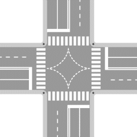 Le strisce di guida in figura debbono essere lasciate sempre alla destra del veicolo quando si svolta a destra