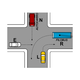 Nell’incrocio rappresentato nella figura il conducente del veicolo E passa per primo