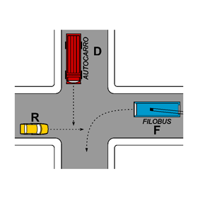 Nell’intersezione di figura il filobus passa per primo perché vincolato alla linea elettrica aerea