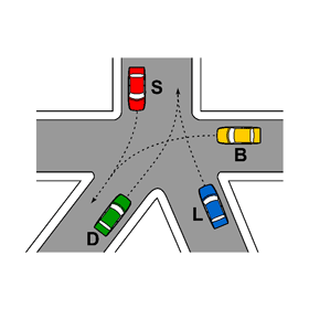 Nell’intersezione di figura il veicolo B deve dare la precedenza al veicolo S