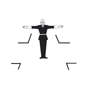 Quando il vigile si dispone con le braccia aperte verso la nostra direzione come in figura non si può attraversare l’incrocio